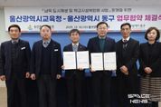스페이스뉴스 스페이스뉴스 기자 | 울산광역시교육청과 울산동구청은 남목 도시재생 사업에 따라 동구 남목초등학교에 조성되는 공영주차장·어울림센터를 학교와 지역이 함께 사용하는 복합 공동생활(커뮤니티) 센터로 확대 개편하기로 했다. 울산교육청과 동구청은 10일 이 같은 내용을 담은 ‘남목 도시재생 사업과 학교시설 복합화 조성을 위한 변경 협약’을 맺었다. 이번 변경 협약은 2023년 9월 합의된 150면 규모 공영주차장과 학교 밖 관사 부지 어울림센터 조성을 지역과 학교가 공동 활용하는 통합형 복합시설로 재구조화하는 내용이 핵심이다. 교육청, 지자체, 학교가 협력해 교육, 돌봄, 문화 기능을 한 공간에 구축하는 ‘학교시설복합화’ 추진 목적에 맞춰 사업이 전면 재설계됐다. 변경된 계획에 따르면 기존 지하 2층 중심의 공영주차장 계획은 지하 1층부터 지상 3층까지 총면적 5,148㎡ 규모의 복합시설로 개편되며, 2027년 12월 준공 예정이다. 조성되는 시설은 102면 규모의 공영주차장, 지역주민을 위한 1, 2층 복합 공동생활 센터, 남목초등학교 전용 3층 교육시설로 구성된다. 또