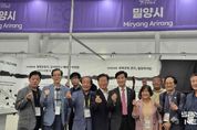 스페이스뉴스 스페이스뉴스 기자 | 경남 밀양시는 10월 11일까지 충북 영동군에서 열리는 2025 영동 세계 국악 엑스포에 참가해 국악산업진흥관 내에 밀양아리랑 홍보관을 운영한다고 15일 밝혔다. 이번 엑스포는 충청북도와 영동군이 주최하고, (재)충북문화재단 영동세계국악엑스포 조직위원회가 주관하는 국악 전문 국제 행사로, 영동 레인보우 힐링 관광지와 국악체험촌 일원에서 30일간 열린다. 밀양아리랑 홍보관에서는 밀양아리랑 음반을 비롯해 SP·EP·LP·원통 음반과 축음기를 전시한다. 관람객들은 전시 자료 감상과 함께 음반 청취 체험을 할 수 있다. 이번 전시는 밀양아리랑의 역사적 의미와 문화적 가치를 알리는 계기가 될 것으로 기대된다. 특히 국악산업진흥관 내 지자체 부스로는 밀양시와 충주문화관광재단 두 곳이 초대됐으며, 밀양시는 이번 홍보관 운영을 통해 밀양아리랑의 가치를 국악의 장에서 대표적으로 알리는 의미를 지닌다. 안병구 시장은 지난 12일 엑스포 개막일에 밀양아리랑 홍보관을 찾아 운영 상황을 점검한 뒤 개막식 공식 행사에 참석했다. 안 시장은 “이번 영동 세계 엑스포를