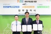 스페이스뉴스 스페이스뉴스 기자 | 인천광역시교육청은 9월 30일 ㈜월미하이랜드(대표 이덕성) 스토리지인천, 남동희망공간(대표 유병희)과 함께 ‘읽걷쓰’ 문화 확산을 위한 업무협약을 체결했다. 이번 협약으로 참여 기관들은 ▲‘읽걷쓰’ 연계 프로그램 운영 ▲지역사회 공헌 활동 협력으로 ‘읽걷쓰’ 활성화와 시민문화 정착을 위해 함께 나선다. 특히 관련 정보와 자원을 공유해 일상이 배움이 되는 교육환경을 조성하고 지역사회와 함께 성장하는 기반을 마련할 계획이다. 도성훈 교육감은 “인천교육은 ‘읽걷쓰’ 기반의 올바로․결대로․세계로 교육으로 학생성공시대를 활기차게 열어가고 있다”며 “이번 업무협약을 통해 기관 간의 상호 신뢰와 협력을 바탕으로 ‘읽걷쓰’ 실천 문화가 더욱 확산되기를 바란다”고 말했다. [뉴스출처 : 인천시교육청]