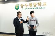 스페이스뉴스 스페이스뉴스 기자 | 김동연 경기도지사가 16일 동두천중학교를 찾아 노점 할머니께 비상금을 건넨 선행으로 화제가 된 옥현일 군에게 표창을 수여했다. 김 지사는 학교 현관에서 학생회와 함께 ‘함께라서 더 빛나는 우리’ 생명존중 캠페인에 동참하고, 이어 1층 로비에서 옥현일 군에게 표창장을 전달했다. 옥현일 군은 지난 7월 폭염 속에서 노점상 할머니에게 비상금 3만 원을 건네고 콩 한 봉지를 받은 사연이 알려지며 주목받았다. SNS에 게시된 영상은 인근 공방 운영자가 촬영한 것으로, 현일 군이 남모르게 베푼 선행이 담겨 3일 만에 206만 조회수, ‘좋아요’ 약 7만, 댓글 2,500개 이상을 기록했다. 당시 현일 군은 “더운 날씨에 할머니가 물건을 빨리 팔고 쉬셨으면 좋겠다는 마음이었다”고 말해 많은 시민에게 감동을 줬다. 김동연 지사는 이날 인사말을 통해 “옥현일 군이 도운 할머니가 우리의 어머니, 할머니”라며 “수많은 옥현일 군이 동두천중에 있다고 본다. 그것이 사람 사는 세상”이라고 말했다. 이어 “여러분이 그런 따뜻한 마음을 갖길 바란다. 당장은 남을 위한 배려 같지만