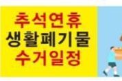 스페이스뉴스 스페이스뉴스 기자 | 사천시는 추석 명절을 맞아 9월 8일부터 10월 12일까지 ‘2025년 추석 폐기물 관리대책’을 수립·추진해 명절 쓰레기 대란을 사전에 막는다고 10일 밝혔다. 시는 추석 당일(10월 6일)과 익일(10월 7일)은 생활쓰레기를 수거하지 않고, 8일부터 수거를 재개해 연휴기간 밀린 쓰레기를 모두 수거할 계획이다. 또한, 연휴 기간 동안 발생할 수 있는 쓰레기 관련 민원을 신속하게 처리할 수 있도록 상황실과 기동처리반을 운영한다. 특히, 추석맞이 특별 환경정화활동을 실시하고, 추석 선물 과대포장과 쓰레기 무단투기 행위를 집중 단속할 방침이다. 박동식 시장은 “추석 연휴 전에 생활쓰레기를 미리 배출해 주시고, 연휴기간에는 10월 7일(화요일) 저녁부터 쓰레기를 배출해 달라”며 “시민 모두가 쾌적한 명절을 보낼 수 있도록 적극적인 협조를 부탁드린다”고 당부했다. [뉴스출처 : 경상남도사천시]