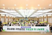 스페이스뉴스 스페이스뉴스 기자 | 울산 중구(구청장 김영길)가 10월 23일 오후 2시 30분 중구청 대회의실에서 ‘2050 탄소중립 구민실천단 역량 강화 및 나눔 활동’을 개최했다. 이번 행사는 탄소중립에 대한 공감대를 형성하고 주민 주도형 탄소중립 실천 문화를 확산하기 위해 마련됐다. 이날 행사에는 김영길 중구청장과 박경흠 중구의회 의장, 2050 탄소중립 구민실천단 단원 등 140여 명이 함께했다. 이번 행사는 △탄소중립포인트제 안내 및 홍보 △축하 공연 △탄소중립 실천 다짐 발표 △전문가 특강 △플라스틱 용기 없는 친환경 샴푸(샴푸바) 만들기 체험 순으로 진행됐다. 이날 신규 단원인 성신고 학생 및 교사 40명은 일상에서 다양한 탄소중립 활동에 앞장서겠다는 다짐을 밝혔다. 이어서 전문가 특강 순서에는 최승룡 에넬엑스코리아 신사업본부장이 ‘탄소중립과 세계적 추세(글로벌 트렌드)’라는 주제로 전 세계의 기후 위기 대응 흐름과 탄소중립 실천의 중요성 등을 설명했다. 이와 함께 참석자들은 플라스틱 용기 없는 친환경 샴푸(샴푸바)를 만들며 환경보호 의지를 다지고, 직접 만든