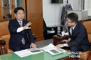 스페이스뉴스 스페이스뉴스 기자 | 김영환 지사가 2026년도 정부예산 확보를 위해 연일 국회를 오가며 ‘광폭 행보’를 이어가고 있다. 김 지사는 11월 14일 국회를 방문해 한병도 국회 예산결산 특별 위원회 위원장, 박형수 국민의힘 예결위원회 간사, 김도읍 국민의힘 정책위의장을 차례로 만나 충북도의 주요 핵심사업이 국회 증액 심의 과정에서 반영될 수 있도록 적극 건의했다. 이번 방문은 지난 11월 5일 국민의힘 충청권 예산정책협의회, 11월 12일 지역 국회의원 예산정책협의회와 송언석 국민의힘 원내대표 면담에 이은 세 번째 일정으로, 김 지사는 충북의 주요 현안사업과 지역 균형발전을 위한 국비 지원의 필요성을 설명했다. 이날 중점적으로 건의한 사업은 다음과 같다. ▲청주국제공항 민간전용 활주로 건설(사전타당성조사 용역비 5억 원) ▲KAIST 부설 충북 AI BIO 영재학교 설립(공사비 등 147억 원) ▲미호강(국가하천) 홍수예방사업(설계비 20억 원) ▲충주댐 수력기반 그린수소 인프라구축(설비공사비 등 56.4억 원) ▲제천(청풍호) 내륙 국가어항 지정(설계비 15억 원) ▲청주 남이 부용외천 ~ 양촌(국