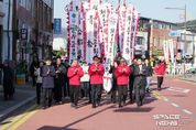 스페이스뉴스 스페이스뉴스 기자 | 가을 정취가 무르익는 가운데, 청송의 대표 축제인 제19회 청송사과축제가 수많은 방문객들로 북적이며 한층 더 풍성하게 열리고 있다. 10월 29일 개막한 이번 축제는 ‘청송~다시 푸르게, 다시 붉게’를 주제로 오는 11월 2일까지 청송읍 용전천 일원에서 펼쳐지고 있다. 축제 현장은 주말 못지않은 인파로 붐비며, 곳곳에서 즐거운 웃음소리가 가득하다. 축제 첫날인 10월 29일에는 ‘제28회 청송문화제’가 함께 열려 ‘청송도호부사 퍼레이드’를 시작으로 ‘청송문화제 개막식’, ‘소헌왕후 추모 헌다례’ 등 전통과 품격이 어우러진 다채로운 행사가 이어졌다. 이와 함께 사과 올림픽 3종 경기, 도전-사과 선별 로또, 꿀잼-사과난타 등 남녀노소 누구나 즐길 수 있는 체험 프로그램들이 성황을 이루며 방문객들에게 색다른 재미를 선사하고 있다. 청송읍 일대는 평일임에도 불구하고 전국 각지에서 몰려든 관광객들로 발 디딜 틈이 없을 정도로 북적였으며, 사과향 가득한 거리 곳곳에서 웃음소리와 음악이 흘러나왔다. 한편 10월 30일에는 ‘제4회 청송황금사과 전국고교