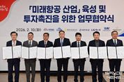 스페이스뉴스 스페이스뉴스 기자 | 대한민국 미래항공산업 핵심 거점으로 비상 채비를 서두르고 있는 충남 태안 천수만에 항공·방산·우주 분야 글로벌 기업들이 응원군으로 떴다. 김태흠 지사는 10일 태안문화예술회관에서 성일종 국회의원, 이정석 국방과학연구소 부소장, 대한항공·LIG넥스원·한국항공우주산업(KAI)·한화에어로스페이스 등 4개 참여 기업 관계자가 참석한 가운데 미래항공 산업 육성 및 투자 촉진을 위한 업무협약을 체결했다 이번 협약은 태안 천수만 B지구 일원에 건립 추진 중인 국방미래항공연구센터 연계 기업 지원 인프라를 토대로, 미래항공산업 전략적 거점을 육성하고, 지역 신성장동력 창출을 위해 상호 협력하기 위해 맺었다. 협약 기관 및 기업은 우선 △국방미래항공연구센터 등 연구 및 기업 지원 인프라 조성 △중앙·지방정부 및 기업의 원활한 사업 추진을 위한 각종 협력 △공공·민간 투자 예산 확보 등에 힘을 모으기로 했다. 이와 함께 도는 국방미래항공연구센터 연계 특화산업단지 조성, 교통 등 정주여건 개선 및 안정적인 용수·전력 공급 등 기업 유치 기반 구축, 기업 투자 활동에 대한 행·재정적 지원에 나선다.