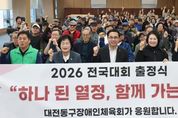 스페이스뉴스 스페이스뉴스 기자 | 대전 동구는 지난 23일 동구청 대회의실에서 ‘2026년 동구장애인체육회 전국대회 출정식’을 개최했다고 밝혔다. 이날 출정식에는 박희조 동구청장을 비롯해 오관영 동구의회 의장, 종목별 협회 임원 및 선수 등 60여 명이 참석했으며, 출정복 전달과 선수대표 결의문 낭독을 통해 선수단의 각오를 다졌다. 특히 참가 선수들은 그동안 갈고닦은 기량을 바탕으로 정정당당한 경기와 최선을 다하는 자세로 동구의 명예를 드높일 것을 다짐했다. 구는 이번 출정식을 통해 파크골프, 게이트볼, 론볼 등 3개 종목 선수들의 사기 진작과 화합을 도모하고, 장애인 체육 활성화를 위한 지원을 지속적으로 확대해 나갈 방침이다. 선수단은 오는 9월부터 11월까지 ▲론볼(9월 29일 인천광역시장배 전국대회) ▲게이트볼(10월 23일 금산인삼배) ▲파크골프(10월 31일 중앙회장배 전국대회) 등 각종 전국대회에 순차적으로 출전할 예정이다. 박희조 동구청장은 “장애를 넘어 끊임없이 도전하는 선수들의 열정과 노력에 진심어린 응원을 전한다”며 “앞으로도 누구나 차별 없이 스포츠를 즐기고 역량을