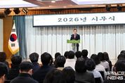 스페이스뉴스 스페이스뉴스 기자 | 울산 북구는 2일 구청 대회의실에서 시무식을 열고, 본격 새해 업무를 시작했다. 이날 시무식은 공무원 헌장, 구정목표 및 구정지표 낭독으로 시작해 구청장의 신년사로 마무리됐다. 박천동 북구청장은 신년사에서 올 한해 구정방향을 설명하며 "2026년은 그동안 다져온 기반 위에서 한 단계 더 도약하는 중요한 해"라며 "멈추지 않고, 주저하지 않으며, 더 큰 미래를 향해 나아가겠다"고 강조했다. [뉴스출처 : 울산시 북구]