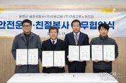 스페이스뉴스 스페이스뉴스 기자 | 울릉군은 지난 17일 도동버스정류장에서 울릉경찰서, ㈜무릉교통, ㈜무릉교통승무원노동조합과 함께 ‘안전운전·친절봉사’ 업무협약식을 개최했다. 이번 협약식은 (주)무릉교통승무원노동조합의 창립 1주년을 계기로 마련된 것으로, 울릉군 농어촌버스의 서비스 수준을 향상시키고 안전운행 문화를 정착시키기 위한 취지를 담고 있다. 행사에는 남한권 울릉군수, 남진복 도의원, 최병호·홍성근 울릉군의원, 최대근 울릉경찰서장 등 약 60여 명이 참석해 자리를 빛냈다. 4개 기관은 ▲웃는 얼굴로 먼저 인사하기 ▲난폭운전 금지 ▲승객 착석 확인 후 출발 ▲배차시간 준수 ▲차량 점검·청결 유지 ▲친절운행 실천 등 6대 실천과제를 공동 선언하고, 안전운전 결의문을 낭독한 뒤 농어촌버스 차량에 부착했다. 또한 행사에서는 대중교통 발전과 안전문화 조성에 기여한 관계자들에게 감사패가 수여됐으며, 지역사회 소통 강화를 위해 다양한 분야의 전문가들이 노동조합 자문위원으로 위촉됐다. ㈜무릉교통승무원노동조합은 지역사회 환원 활동도 이어갔다. 울릉도 초·중·고 학생들을 대상으로 한 장