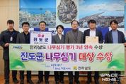 스페이스뉴스 스페이스뉴스 기자 | 진도군이 전라남도가 주관한 ‘2025년 전라남도 나무심기 평가’에서 ‘대상’을 받았다. 이번 평가에서는 전남의 22개 시군을 대상으로 ▲나무심기 실적 ▲홍보 활동 ▲신규 시책 발굴 ▲예산 활용 등 전반적인 추진 과정을 종합적으로 심사했다. 진도군은 공원관리사업소를 중심으로 녹지 공간 조성 사업을 체계적으로 추진하며 높은 평가를 받았다. 특히, 최근 3년 동안 ‘나무심기 평가’에서 ▲2023년 우수상 ▲2024년 최우수상▲2025년에는 영예의 대상을 받으며, 3년 연속 수상과 더불어 평가 등급이 꾸준히 상승하는 의미 있는 성과를 거뒀다. 진도군은 2025년 나무 식재 실적 역시 군 단위에서 최고 수준을 기록했다. 주민들의 생활권을 중심으로 꽃길과 가로수길을 넓히고, 마을 경관을 살리는 녹지 공간을 조성했으며, 주민들이 직접 참여하는 꽃길 가꾸기까지 다양한 녹지 정책을 펼치며 군민이 체감하는 녹지 환경을 만들어 왔다. 김희수 진도군수는 “이번 수상은 현장에서 묵묵히 노력해 온 직원들과 함께 참여해 주신 군민 여러분이 만들어낸 값진 성과다”라며,