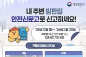 스페이스뉴스 스페이스뉴스 기자 | 내 주변 빙판길 안전신문고로 신고하세요! '25년 12월 1일 ~ '26년 2월 28일 겨울철 재난 안전 위험 요소 집중신고 기간 운영 ■ 겨울철 집중신고 대상 (대설) 제설 미흡, 제설함 관리 불량, 시설물 파손·붕괴 위험 등 (한파) 인도 결빙, 동파 우려, 고드름 낙하, 한파 쉼터 불편 등 (화재) 비상구 물건 적치, 담배꽁초 투기, 소화시설 불량, 불법 취사·소각 등 (축제·행사) 인파 밀집 우려, 행사장 시설 파손, 안전관리 미흡 등 [뉴스출처 : 행정안전부]